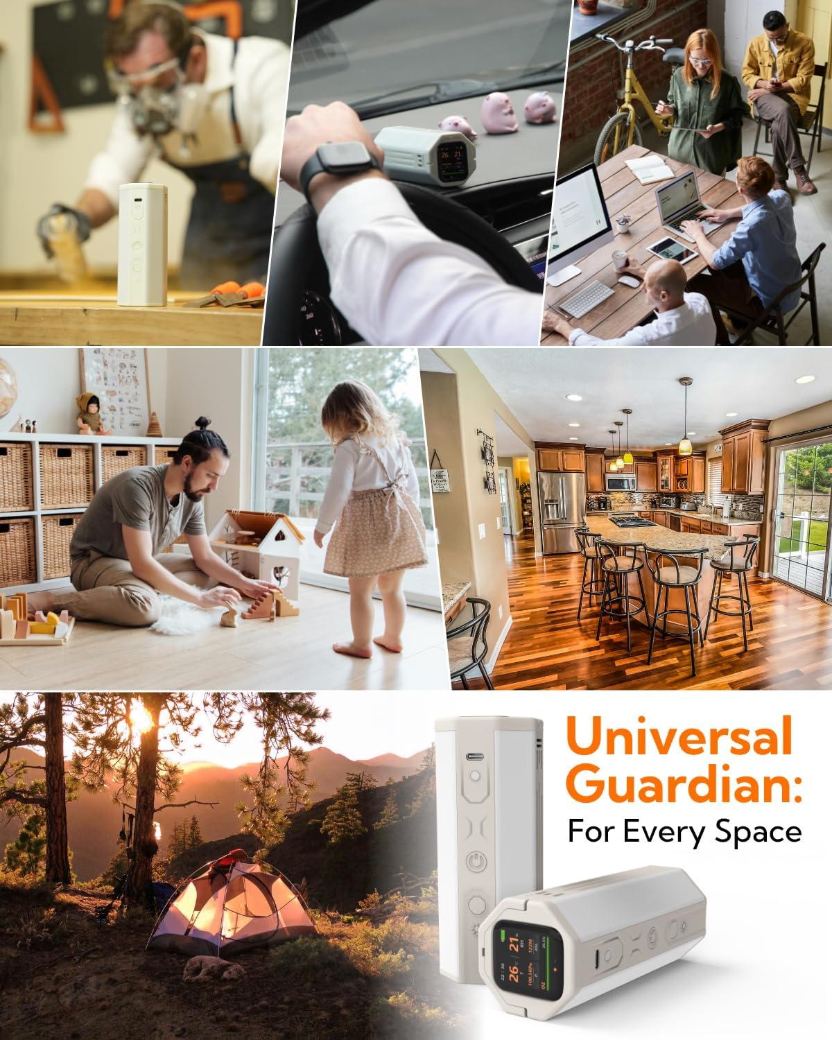 - 8000mah Extended Battery Life & Emergency Power Supply: Equipped with an 8000mAh battery, the Lum Guard portable air detector delivers up to 60 hours of continuous operation and supports 18W fast input/output charging. It doubles as an emergency power bank for charging smartphones/tablets, ensuring connectivity during emergencies or remote expeditions.